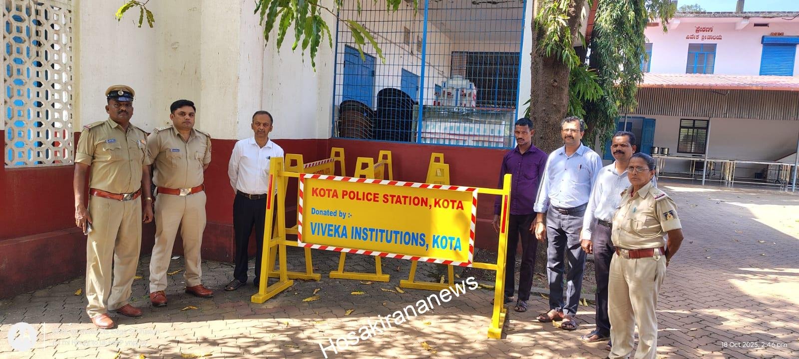 ಕೋಟ: ಇಲ್ಲಿನ ಕೋಟದ ವಿವೇಕ ವಿದ್ಯಾ ಸಂಸ್ಥೆ ವತಿಯಿಂದ ನಾಲ್ಕು ಬ್ಯಾರಿಕೇಡ್ಗಳನ್ನು ಕೋಟ ಠಾಣಾಧಿಕಾರಿ ಪ್ರವೀಣ್ ಕುಮಾರ್ ಇವರಿಗೆ ವಿವೇಕದ ಪ್ರಾಂಶುಪಾಲ ಜಗದೀಶ ನಾವಡ ಹಸ್ತಾಂತರಿಸಿದರು. ಕ್ರೈಂ…